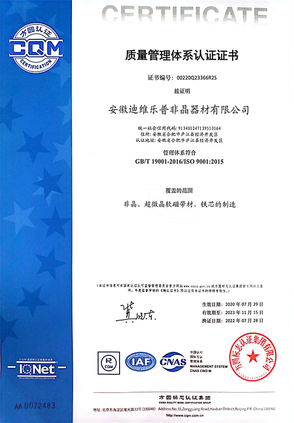 人才是企業(yè)的根基,質(zhì)量決定企業(yè)生命,推進(jìn)非晶材料應(yīng)用,永攀行業(yè)科技高峰,期待與您合作,共鑄輝煌!